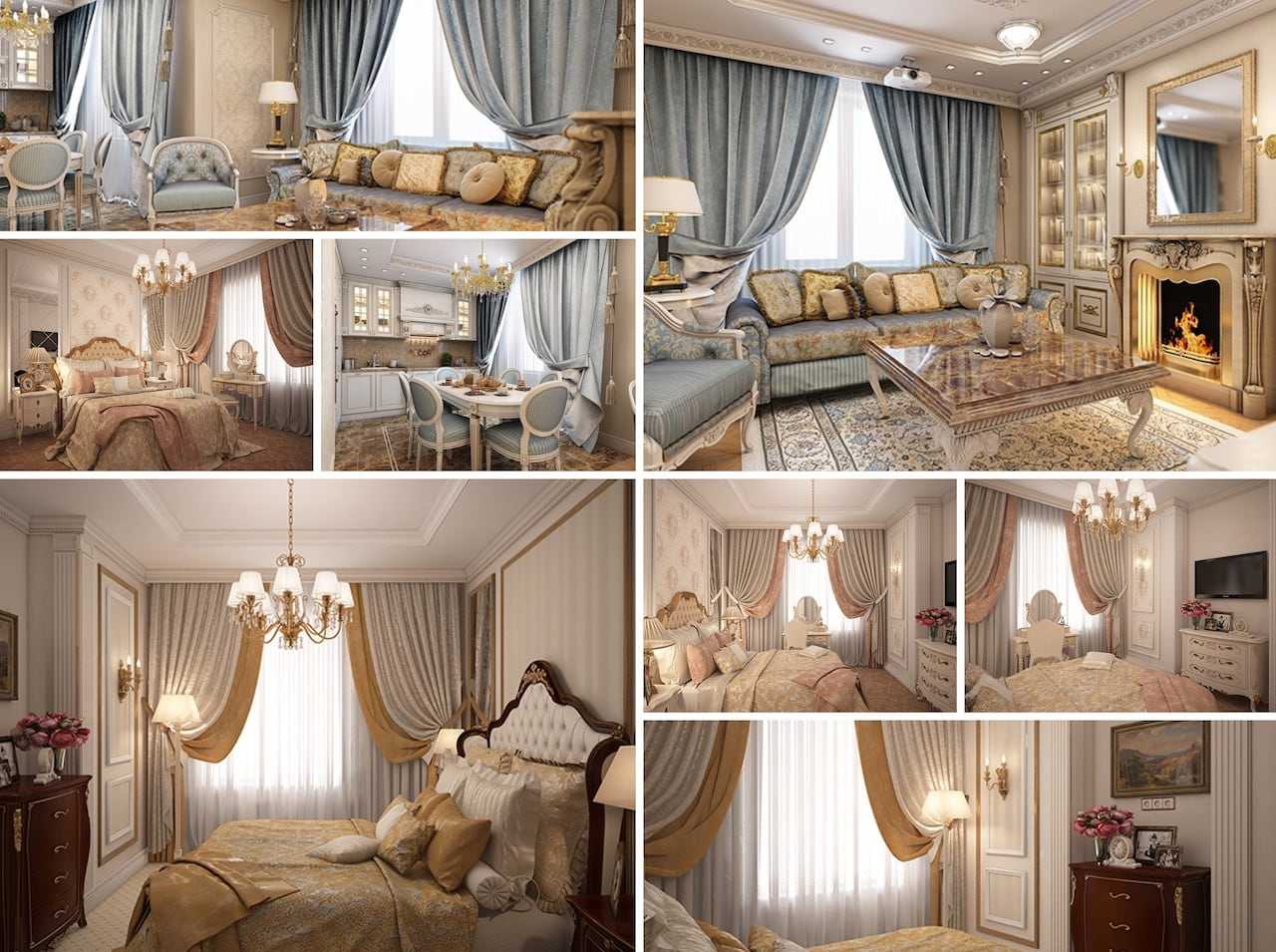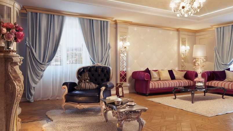 В классических интерьерах выигрышно смотрятся занавеси традиционных очертаний и оттенков. Здесь уместны варианты в стиле «модерн», а придать атмосфере помещений своеобразие помогают модели барочного направления либо французские шторы. Они изысканны, многослойны, нередко делятся на секции, особенно хорошо выглядят в светлых комнатах с высокими потолками.