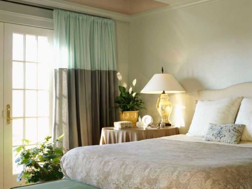 Шторы в спальню в два цвета добавляют выразительности цветам комнаты. Также, они универсальные в использовании. В спальной комнате в любое время суток также необходимо регулировать освещение.