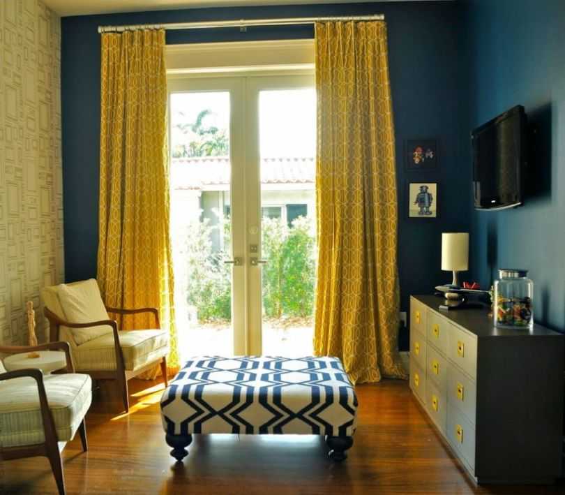 Контрастные шторы станут ярким пятном вашей комнаты. Такой дизайнерский ход позволит оживить помещение, сделав его менее скучным