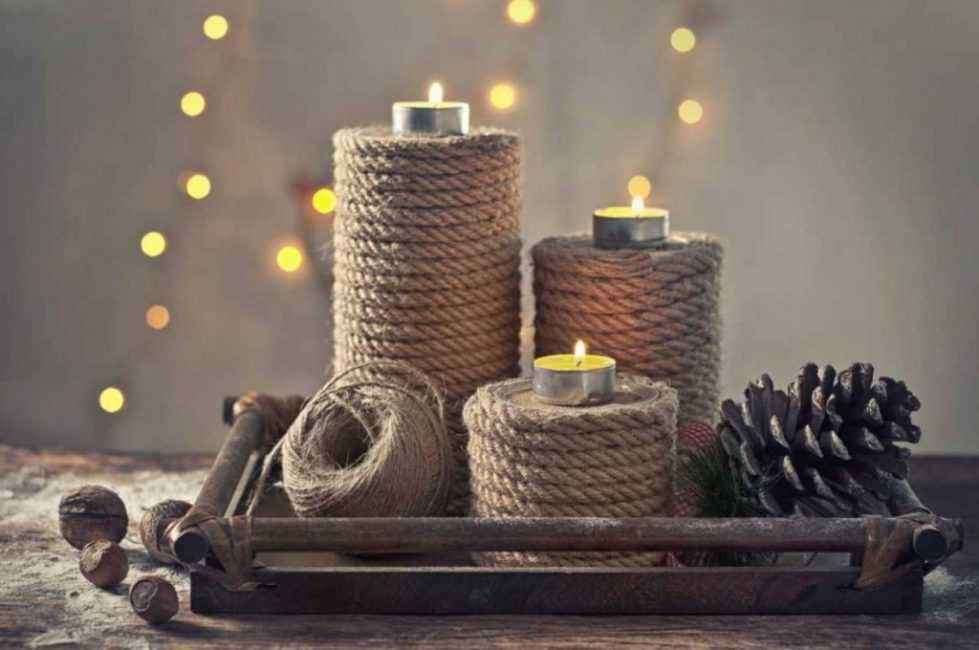 Резервная литровая банка найдется, пожалуй, у каждой хозяйки, поэтому за изготовление основы подсвечника можно не беспокоиться. Главная задача – красиво задекорировать, а способов существует огромное множество.