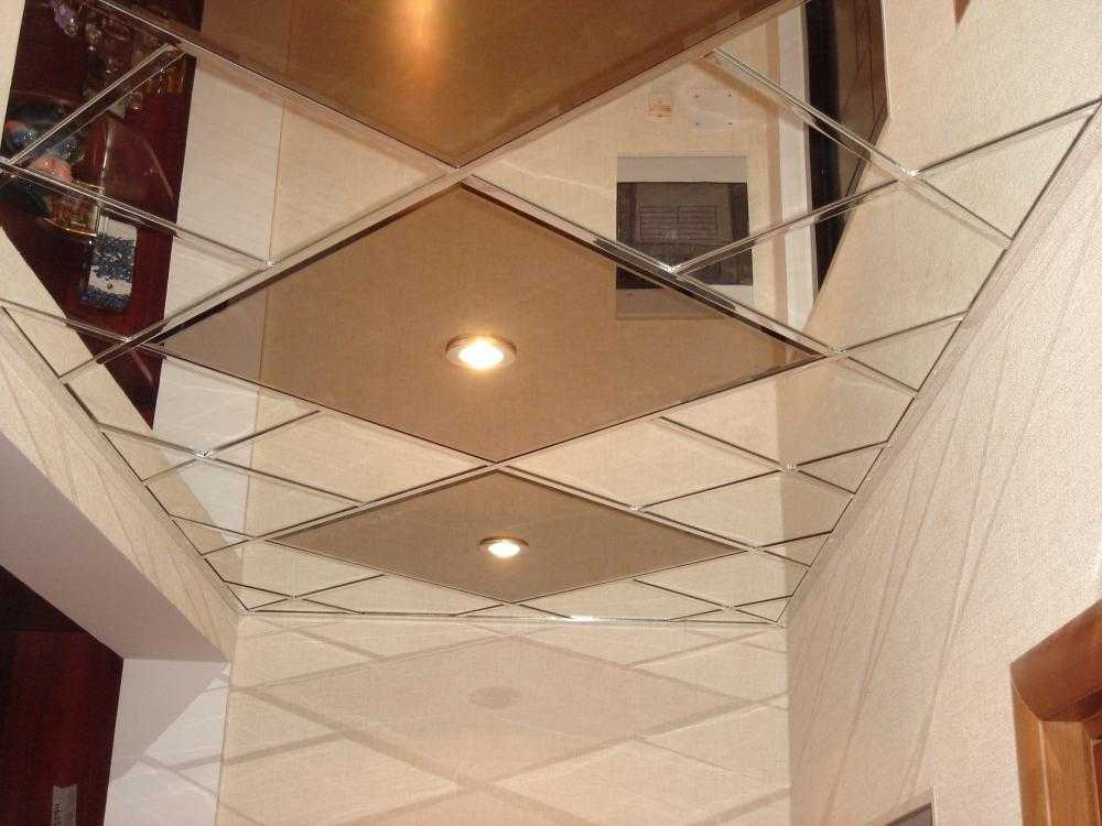 Необычно и стильно выглядит потолок с зеркальными плитами. Это могут быть полистирольные плиты, покрытые зеркальной пленкой, дающей несколько размытое или обычное зеркальное изображение. Прикрепляются такие плиты на специальный клей или шурупы. Зеркальный потолок хорошо подходит для темной комнаты, но в таком случае, освещение нужно усилить.