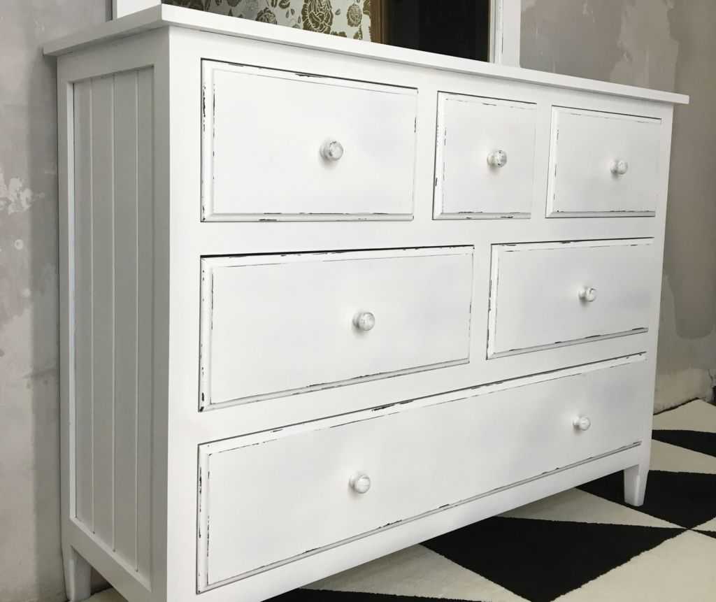 Мебель в стиле прованс деревянная, преимущественно белая со следами потертостей, сколов и отлупившейся краски. Фурнитура имитирует состаренную бронзу, медь или латунь. Это может быть и антикварная мебель, и современная с эффектом состаривания.