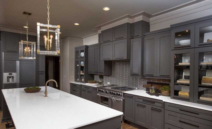 Для более габаритной кухонной мебели серого цвета допустима исключительно светло-серая палитра