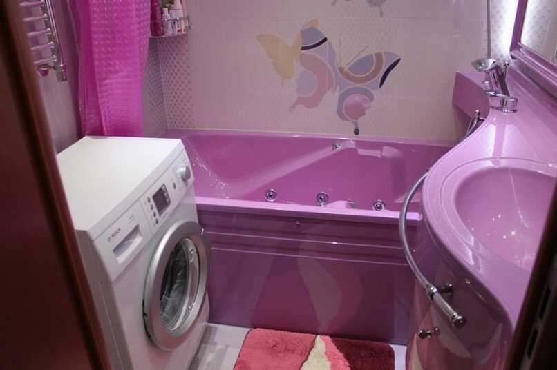Если ты объединишь ванную с туалетом, тогда маленькую стиральную машину можно установить над унитазом. Но здесь не обойтись без гипсокартона, из которого нужно будет сформировать фальш-стену. Нижняя ее часть закроет коммуникации и бачок, а за верхней спрячется стиралка, установленная на мощную полку. Конструкцию необходимо оснастить дверцей, которую ты сможешь «замаскировать» отделочным материалом.