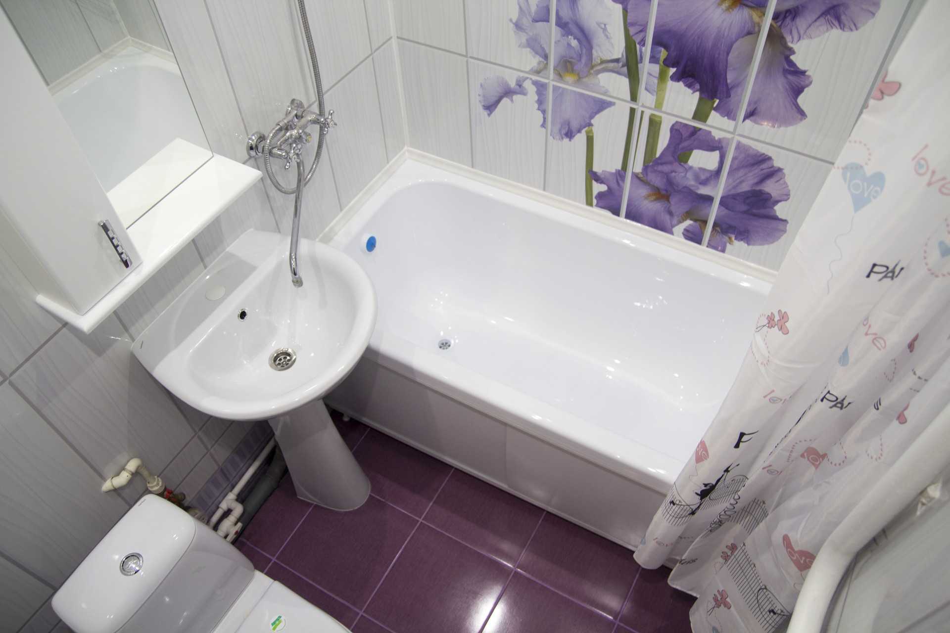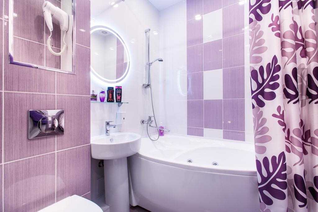 Ванна или джакузи для сиреневой ванной комнаты – традиционно белого или нежно-голубого цвета. Такой интерьер всегда выглядит чистым, а емкости – «стерильными».