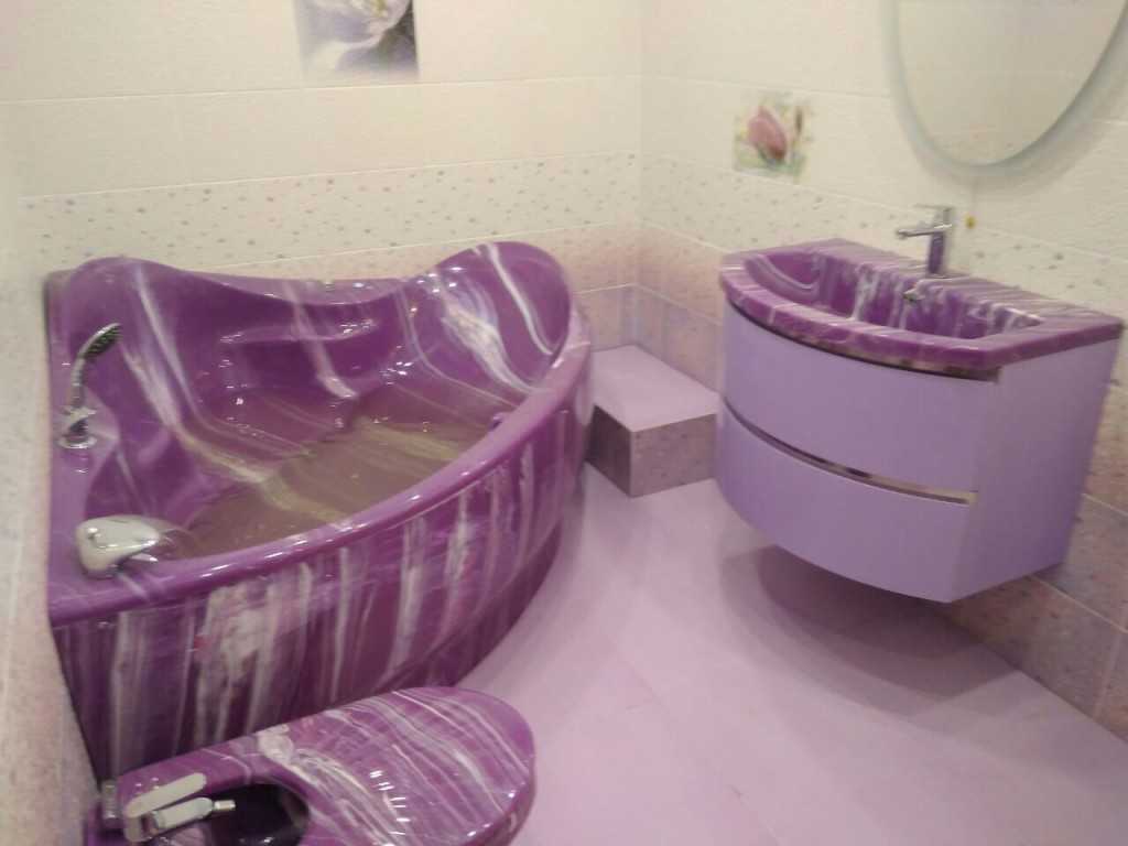 Биде и унитаз сиреневого цвета – тоже редкость. Чаще всего используют белый или голубой санфаянс.
