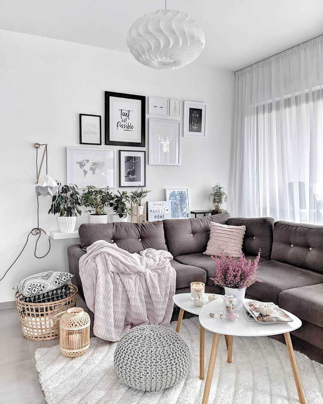 Монохромность северного интерьера разбавляют яркими и простыми аксессуарами. Это семейные фото в лаконичных деревянных рамках, уютные диванные подушки, украшенные этническими узорами. В тренде вязаные чехлы ручной или машинной вязки с рисунком в виде объемных кос.