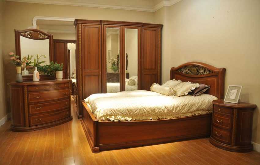 Помимо кровати, в комнате, предназначенной для отдыха, необходима и другая мебель. Основное условие – все модули гарнитура должны гармонировать с ложем для сна.