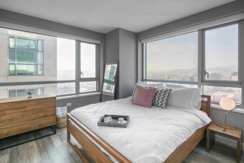 Модный интерьер спальни должен быть лаконичным и уютным. Дизайнеры советуют оставлять как можно больше свободного пространства.