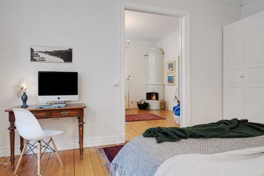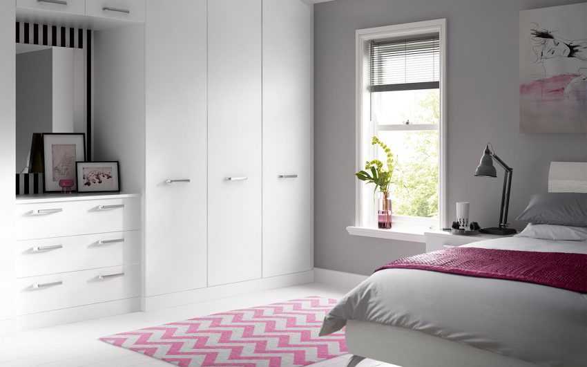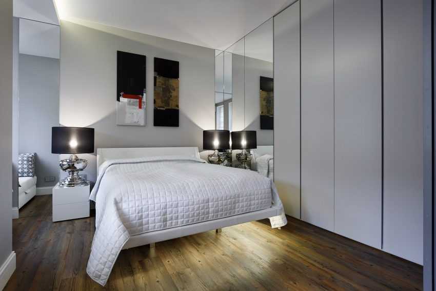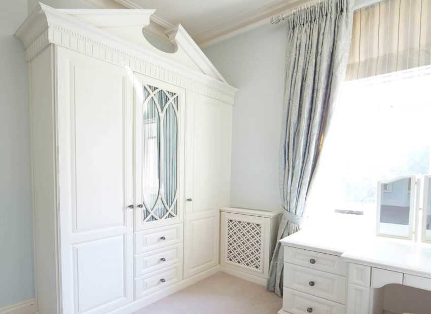 В просторной спальне без проблем должен разместиться гардероб или шкаф-купе, в котором можно хранить всю необходимую одежду.
