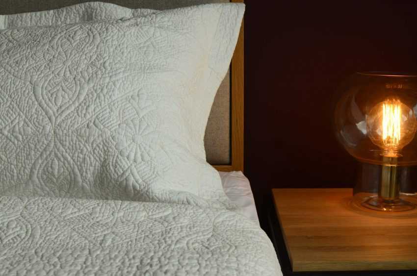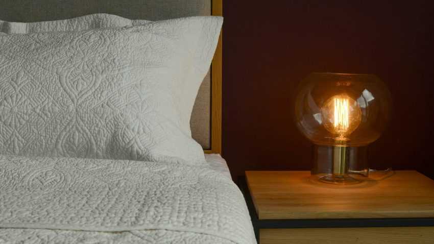 Для спальни специалисты рекомендуют использовать не одну громоздкую люстру, а систему точечного освещения, равномерно покрывающего потолок. Для рабочей зоны потребуется отдельный настольный светильник, обладающий возможностью изменения светового потока.