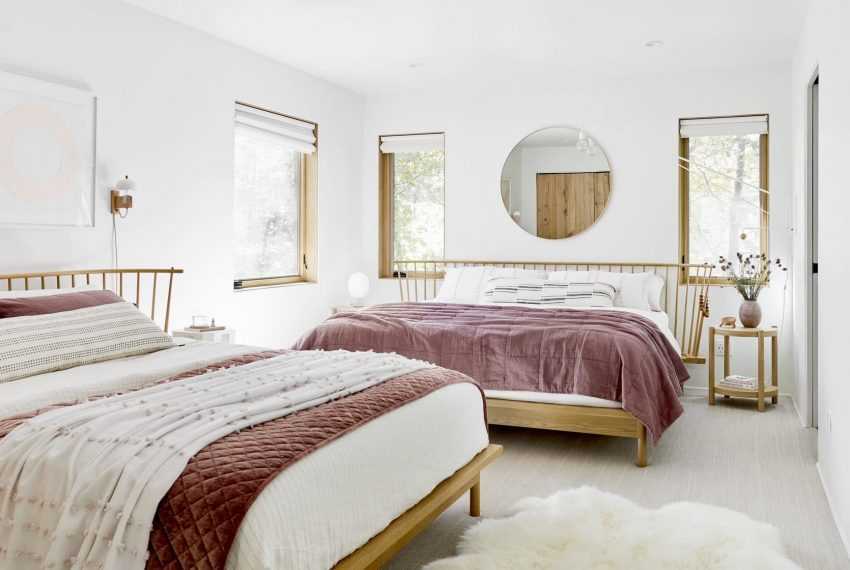 Модный интерьер спальни должен быть лаконичным и уютным. Дизайнеры советуют оставлять как можно больше свободного пространства.
