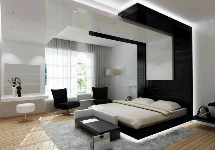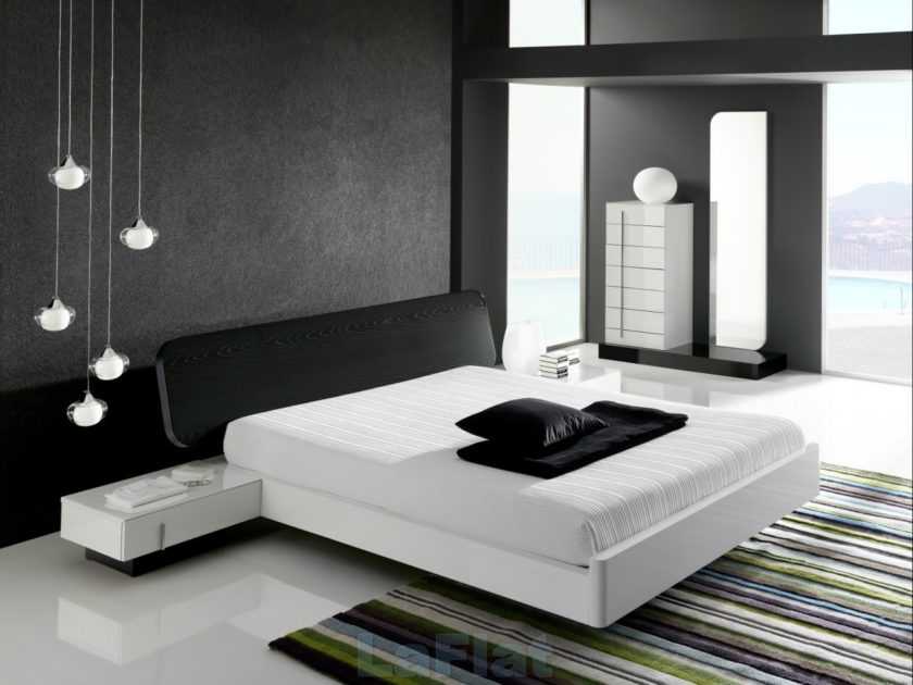 Замечательное решение – спальная комната в бело-черной палитре. Такое сочетание полностью отвечает требованиям стиля и в интерьере смотрится ультрасовременно.