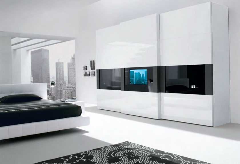 Важным пунктом для спальни в стиле хай тек является встроенная мебель.
