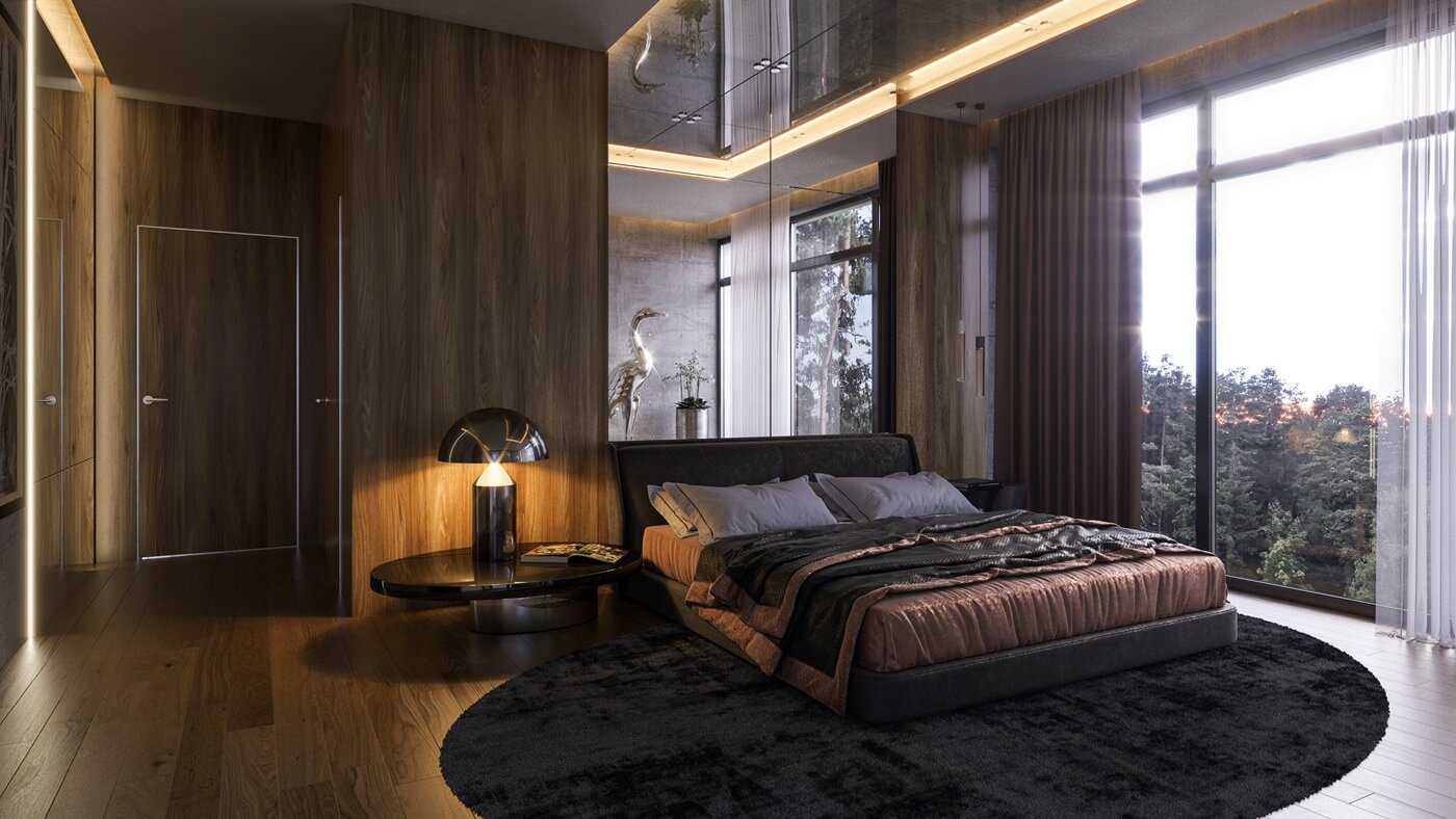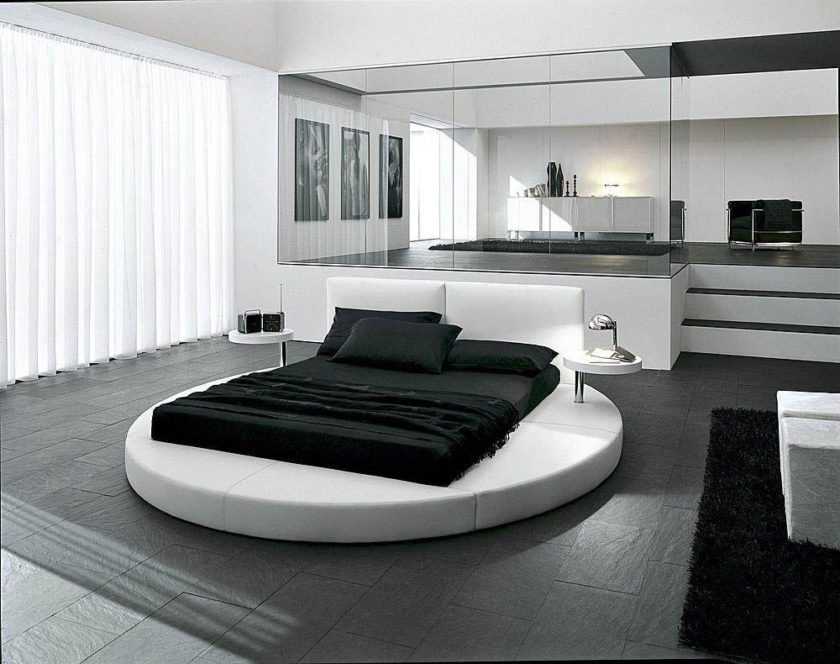 В спальне должно быть много свободного места, поэтому мебель расставляют таким образом, чтобы помещение выглядело просторно.