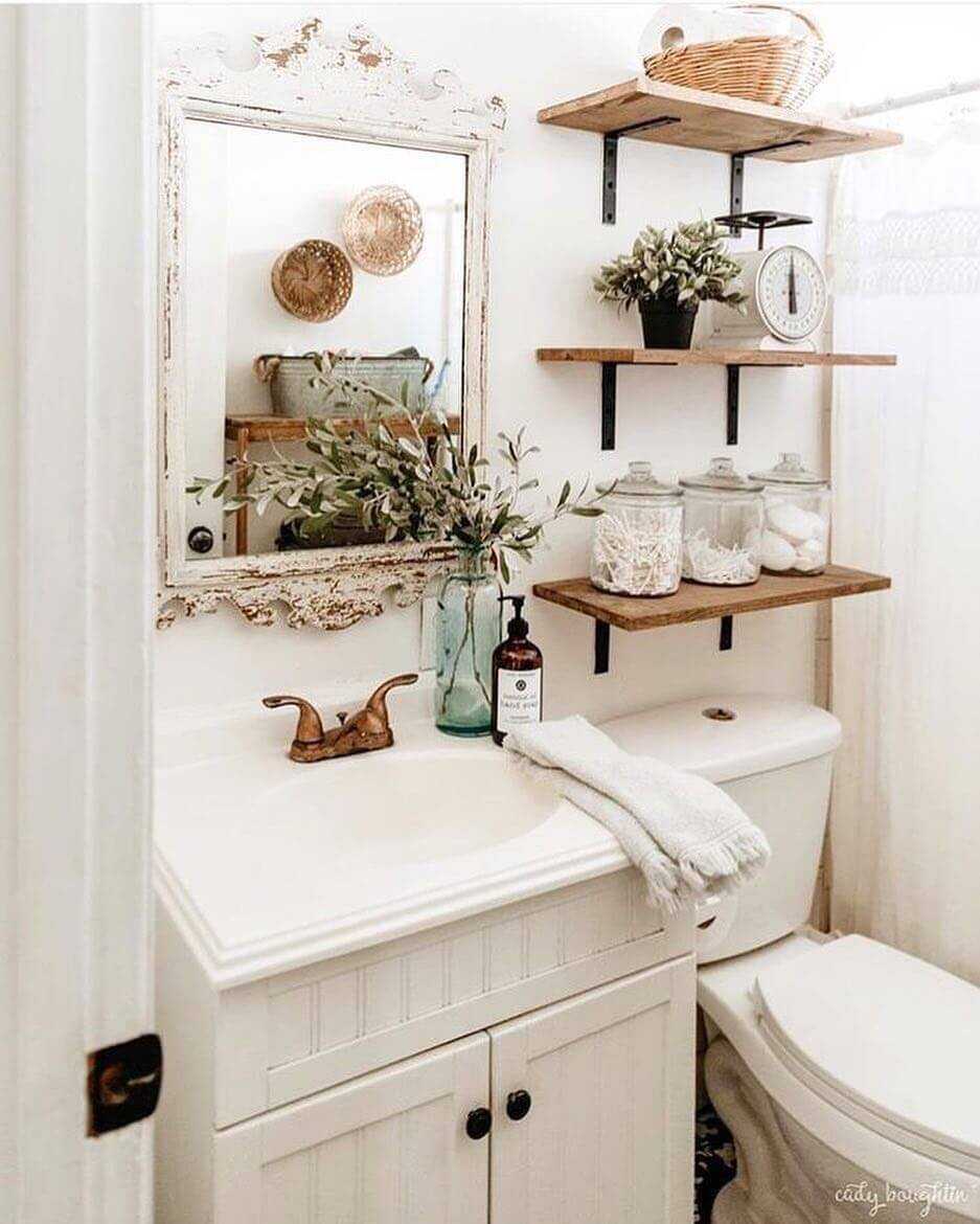 Воссоздать деревенский колорит в ванной можно при любых её размерах. Стены в кантри стиле – деревянные с влагоотталкивающей пропиткой, крашенные или каменные – дополняются деревянной мебелью и коваными крючками, держателями и сантехникой. С аксессуарами лучше не усердствовать – достаточно плетеной корзины для белья.