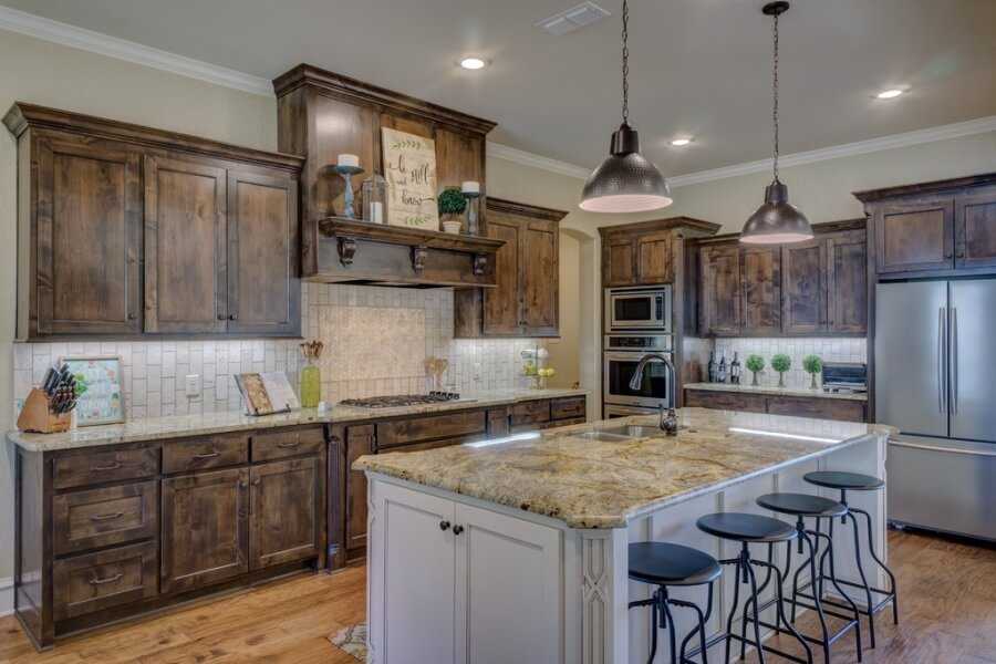 - Общая скромность отделки, отсутствие блестящих хромированных вещей. Все металлическое в кантри должно быть «теплых» цветов. Используется латунь, медь, чугун или сталь, имитирующая эти материалы. Идеально подойдут оттенки стали «коньяк», «античное золото» и т. д.