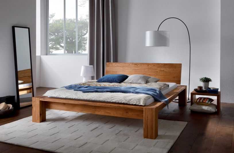 безопасность – кровать из массива дерева можно установить и в комнате ребенка или подростка, поскольку в процессе эксплуатации материал не выделяет вредных веществ, которые могут как-то навредить человеку. Более того, дерево, как материал для изготовления мебели, ценится благодаря наличию в составе эфирных масел. Считается, что они оказывают благотворное влияние на человека, успокаивая его и даря безмятежность. Двуспальная кровать, конечно, стоит дороже