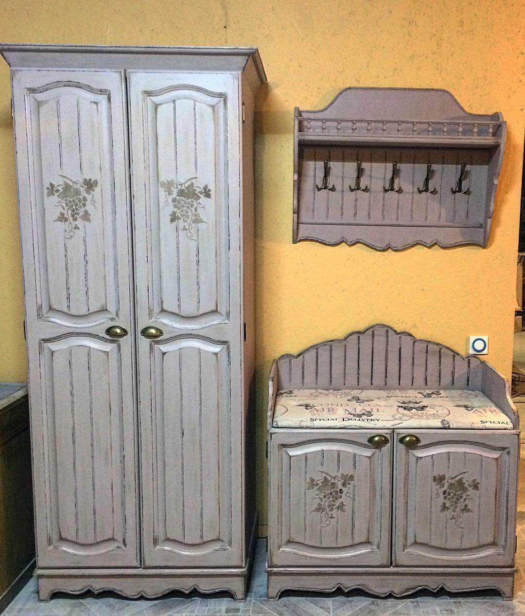 Шкафы должны быть массивными и немного грубоватыми, выполненными из натурального дерева, соответствующей характерной «деревянной» расцветки предпочтительно светлых ее оттенков. Тумбочки и комод должны совпадать в оформлении и расцветке со шкафами.