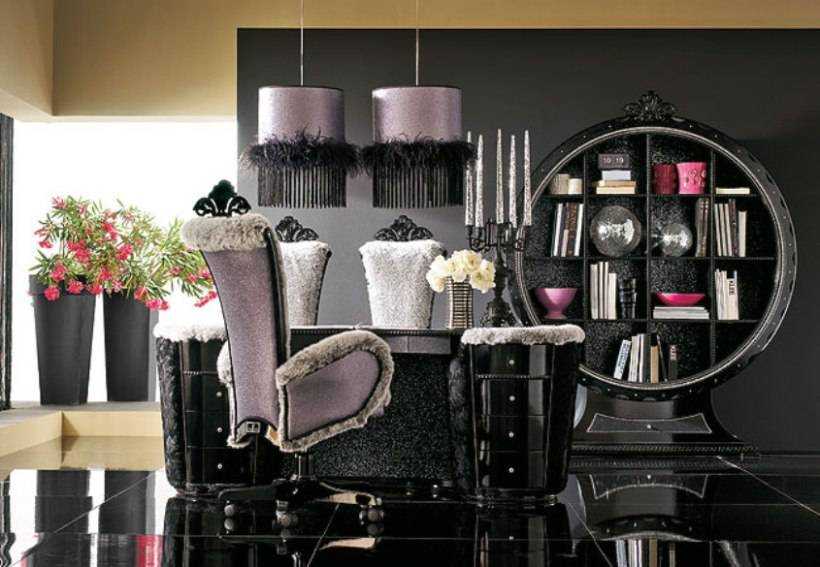 Можно найти место и перламутру, и крокодиловой коже, и другим материалам, воплощающим идеалы роскоши. Дополнительное украшение мебели производится за счет инкрустации либо росписи. Допускается использование предметов со стеклянными и металлическими поверхностями (они в прошлом олицетворяли пик технического прогресса).