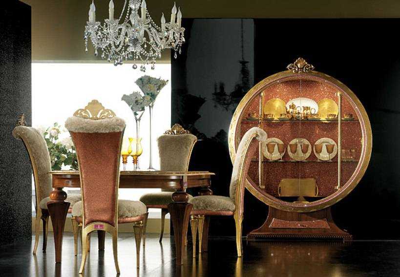 Оформляя этот стиль в разных комнатах, владелец дома сразу должен забыть об экономии и минималистических мотивах. Здесь во всю должно действовать изобилие. Для каждой комнаты предусмотрены свои условия обустройства обстановки.