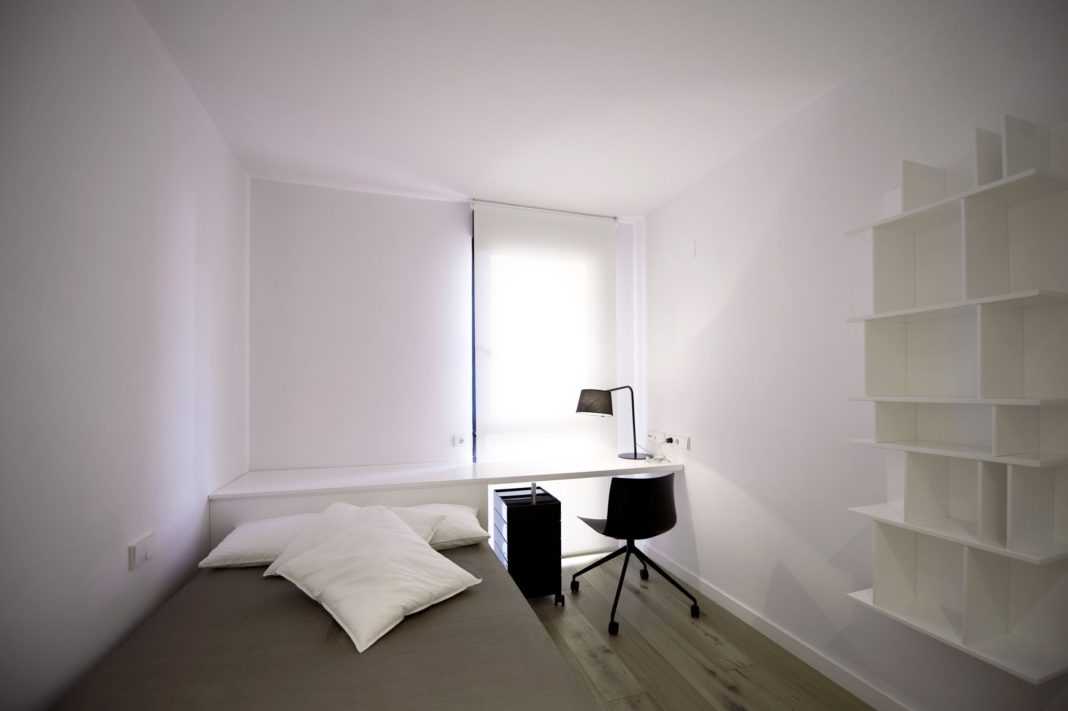 Минимализм подходит для оформления помещений любых размеров. Поэтому, даже очень маленькая спальня станет просторнее и светлее благодаря минимальному количеству мебели и использованию светлых оттенков в оформлении.
