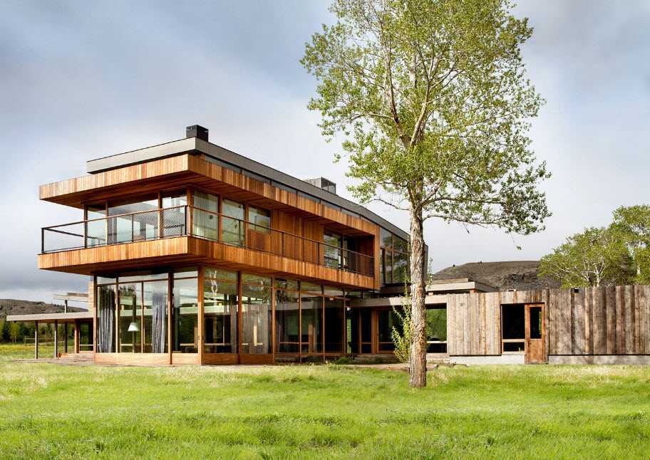 - в комнату нужно впускать максимум естественного света, поэтому окна делают большими, рамы – деревянные в тон полов;