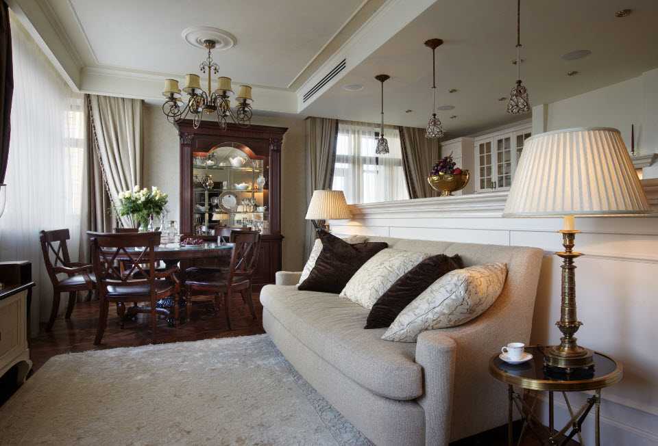 Каждая зона должна иметь собственное локальное освещение. Над обеденным столом можно разместить большую люстру.