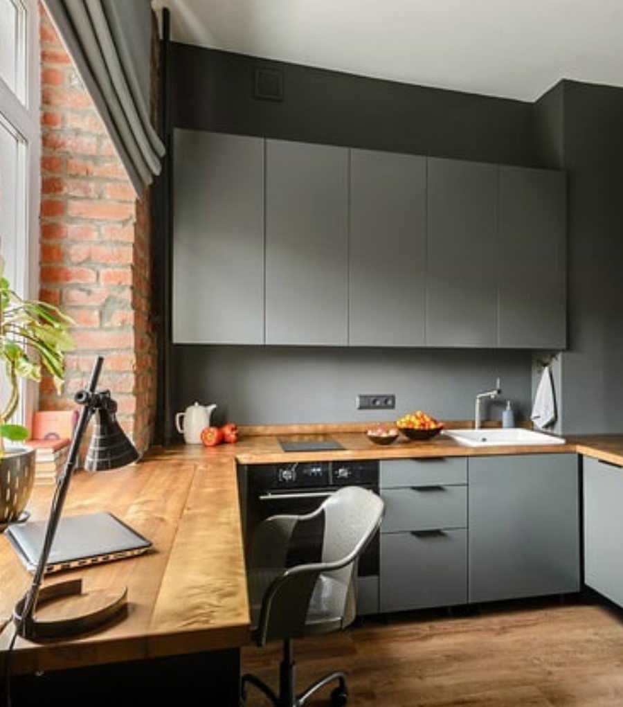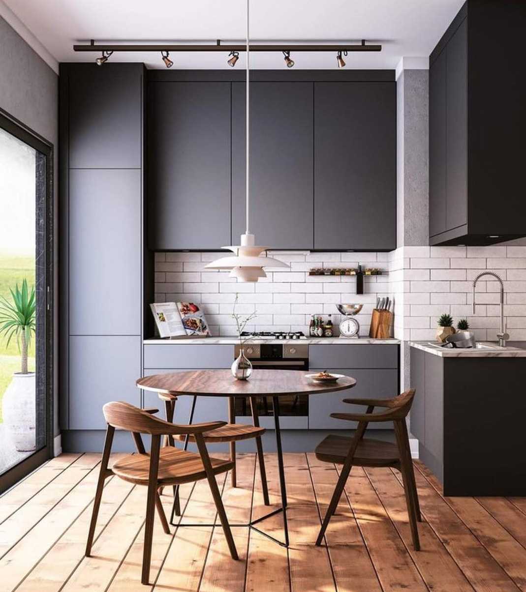 Белый фартук со столешницей разбавят это обилие черного и оживят интерьер, но для маленькой кухни все же лучше поискать другое сочетание.