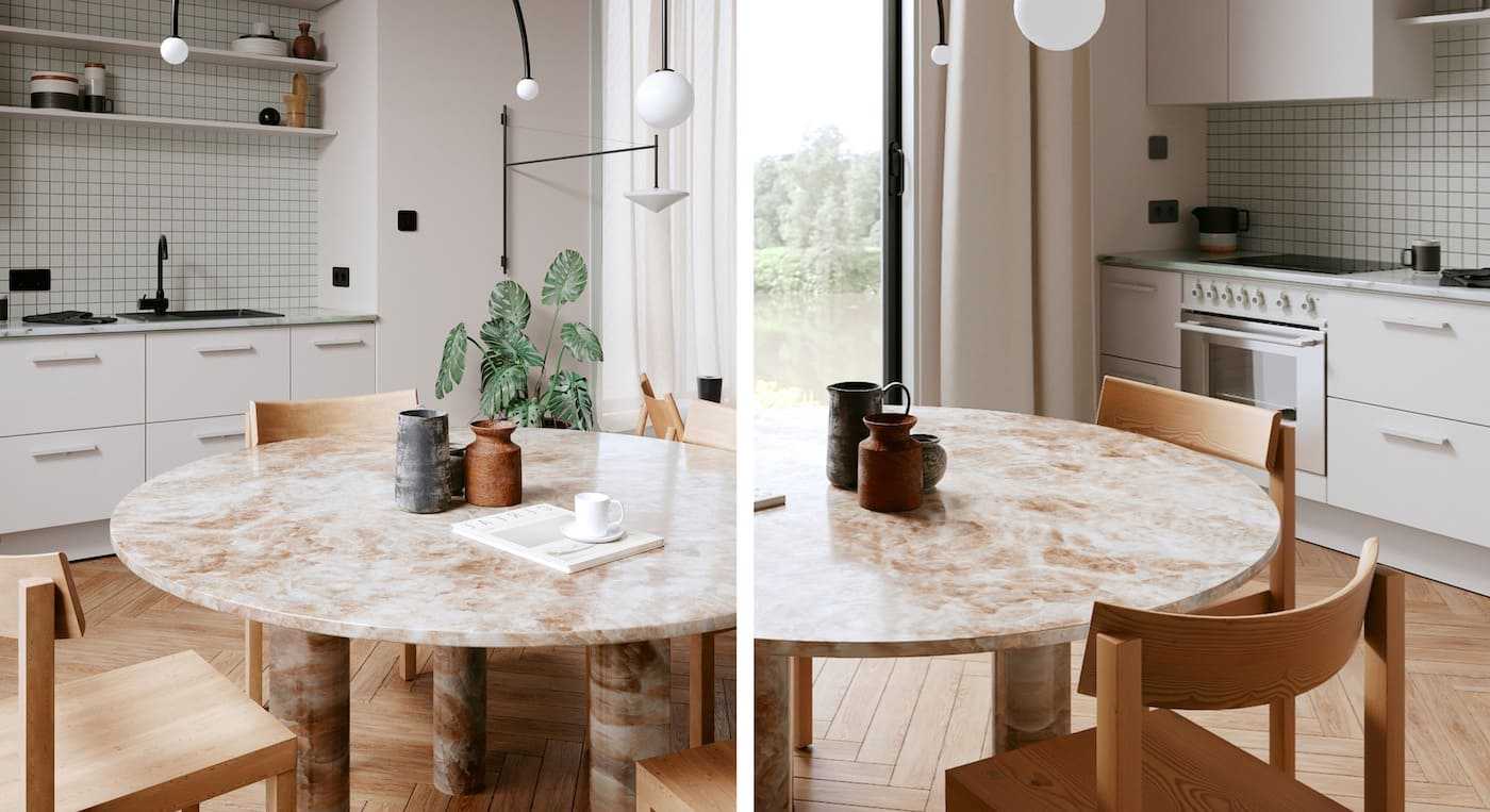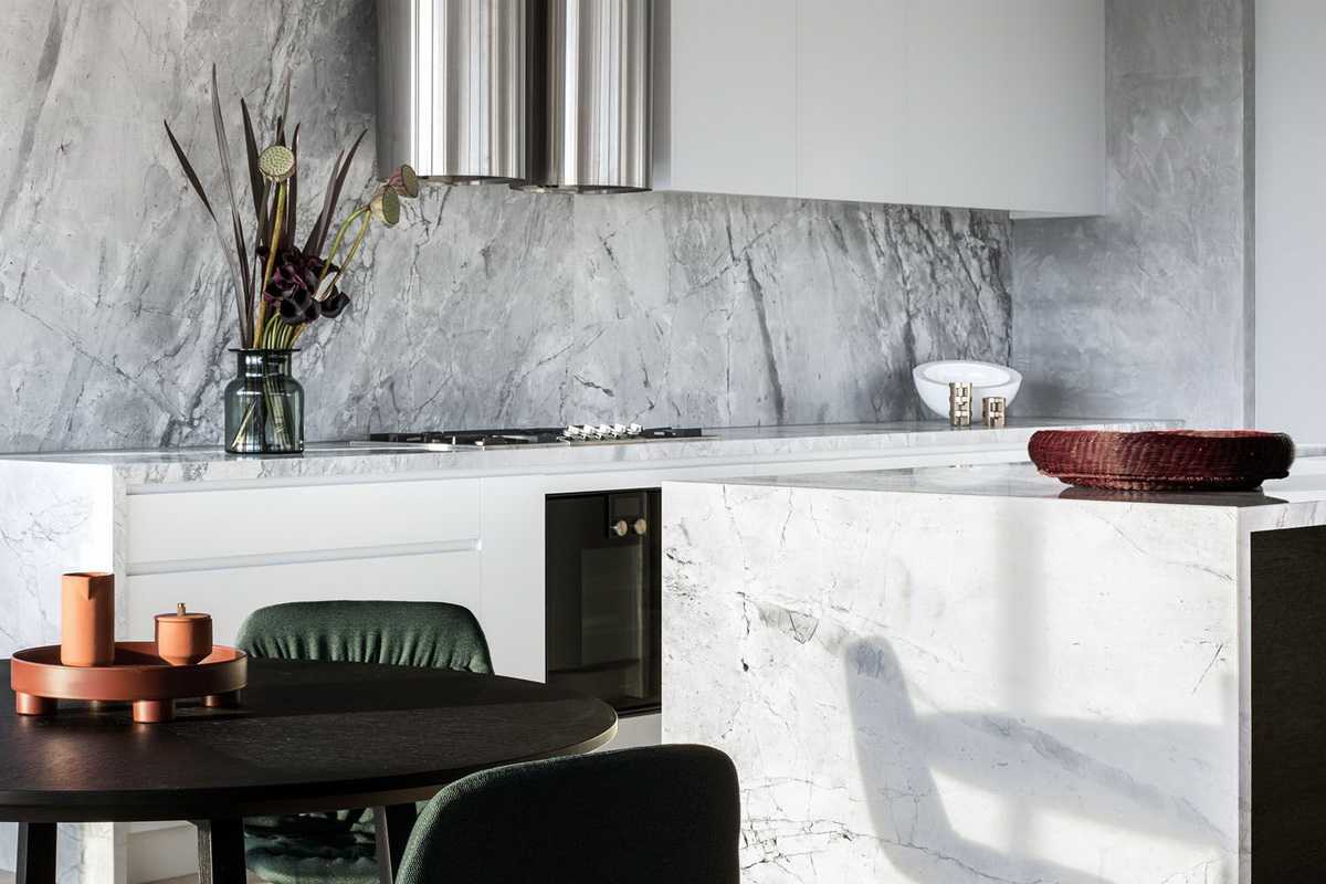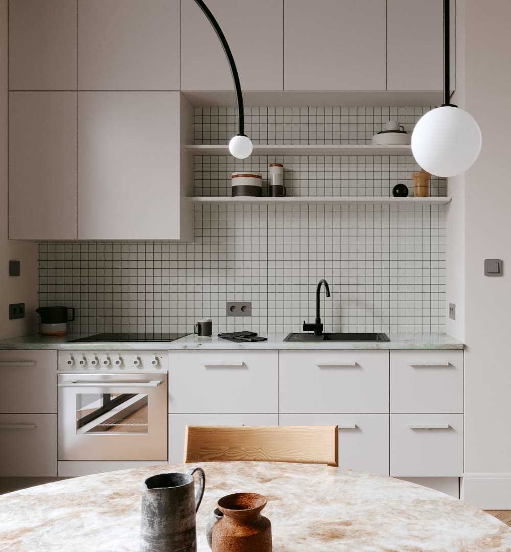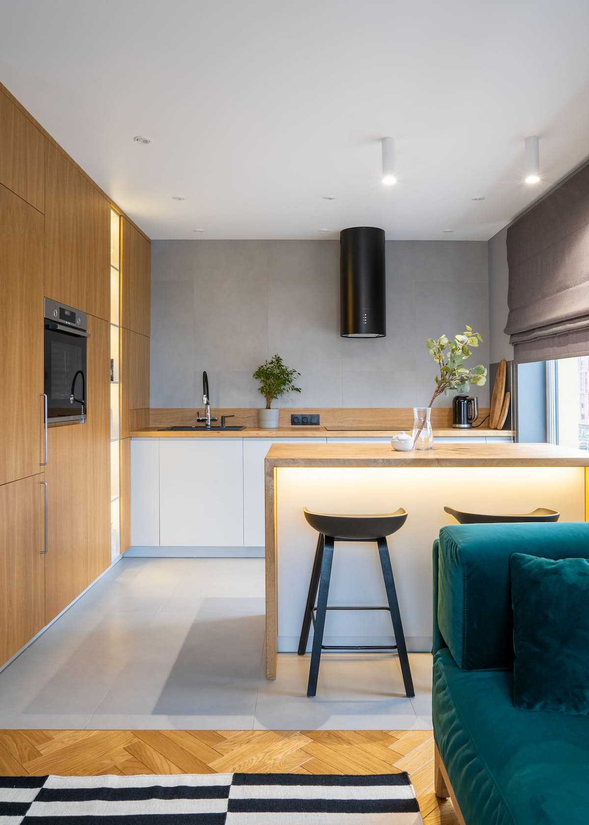 Разрабатывая дизайн-проект модной кухни 2022 важно помнить, что очень светлые и темные цвета должны занимать наименьшую долю пространства – не более 10%. Окончательно расставить акценты в помещении помогут элементы декора
