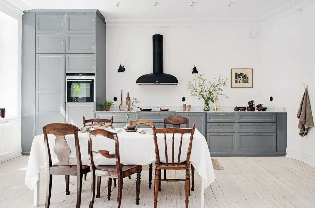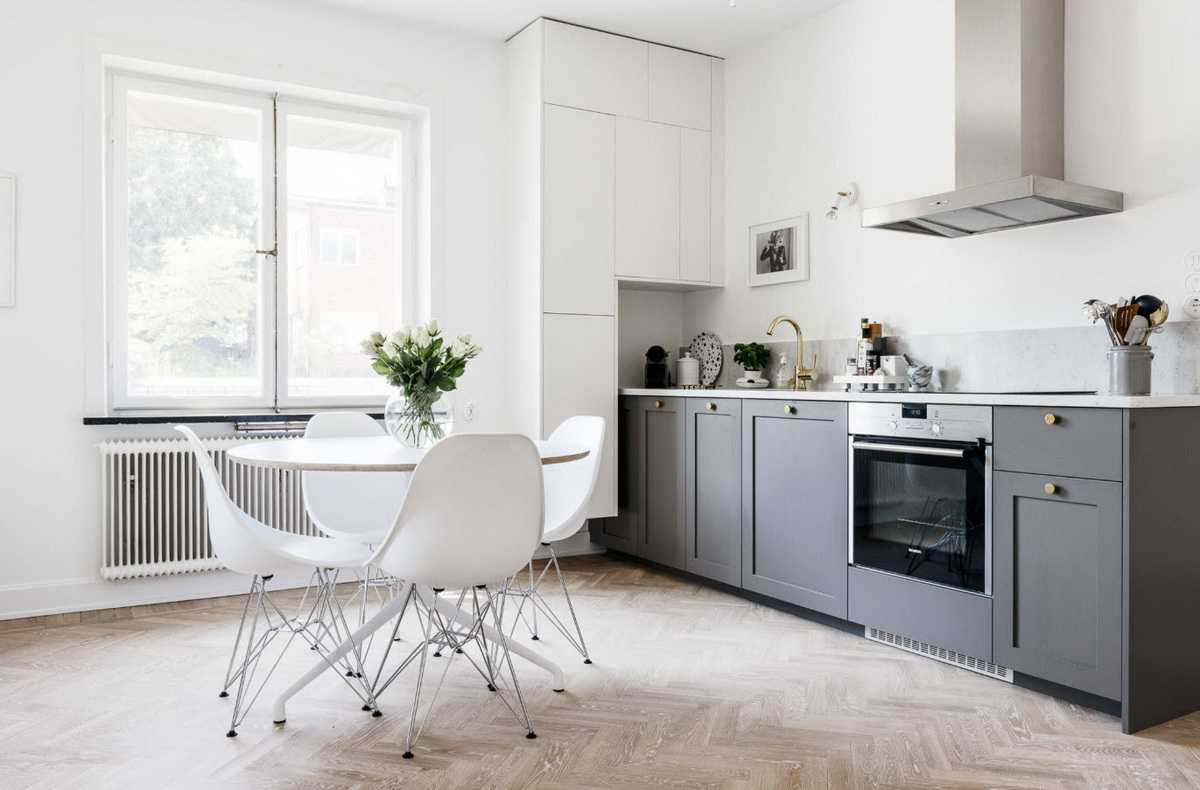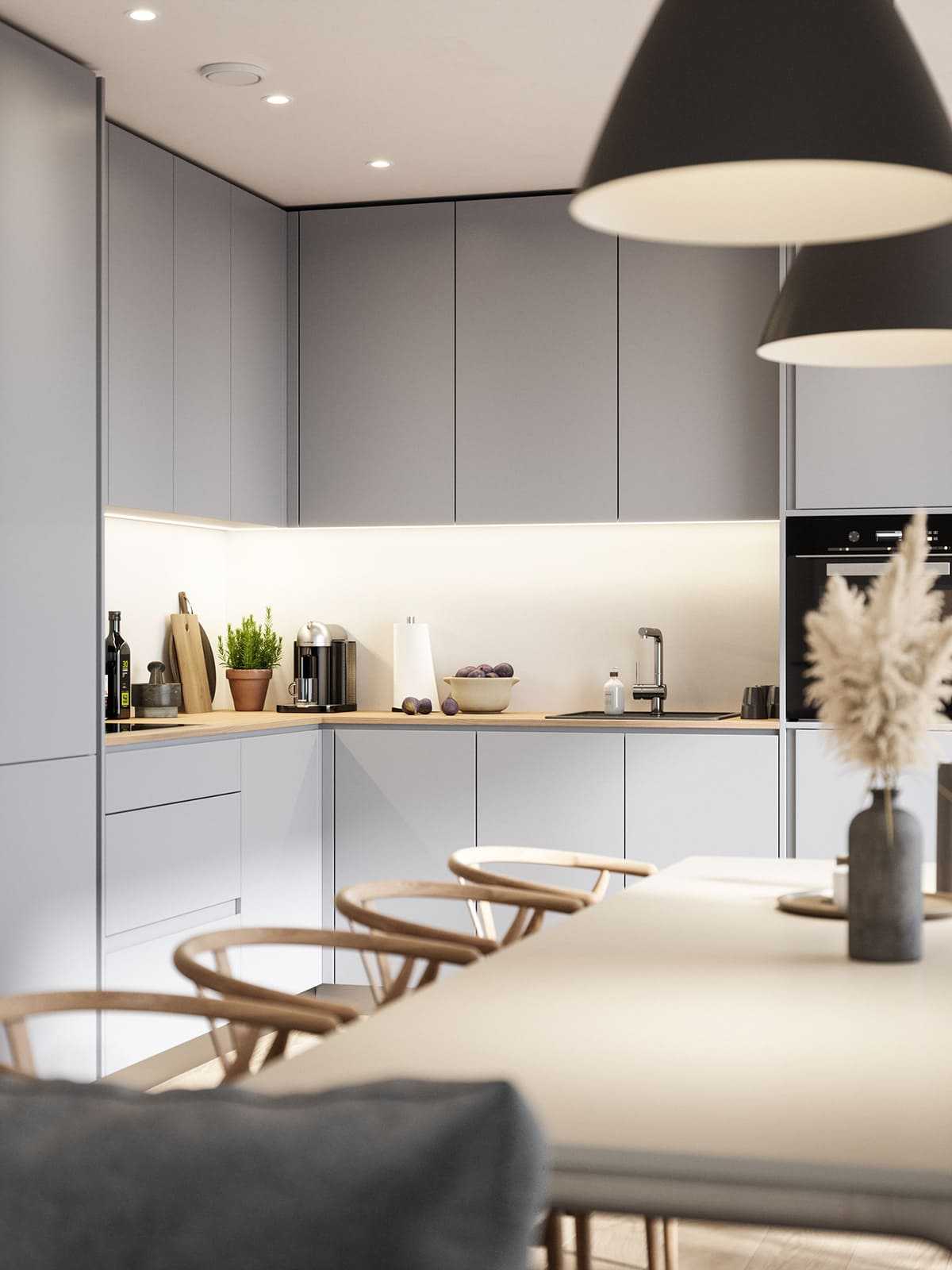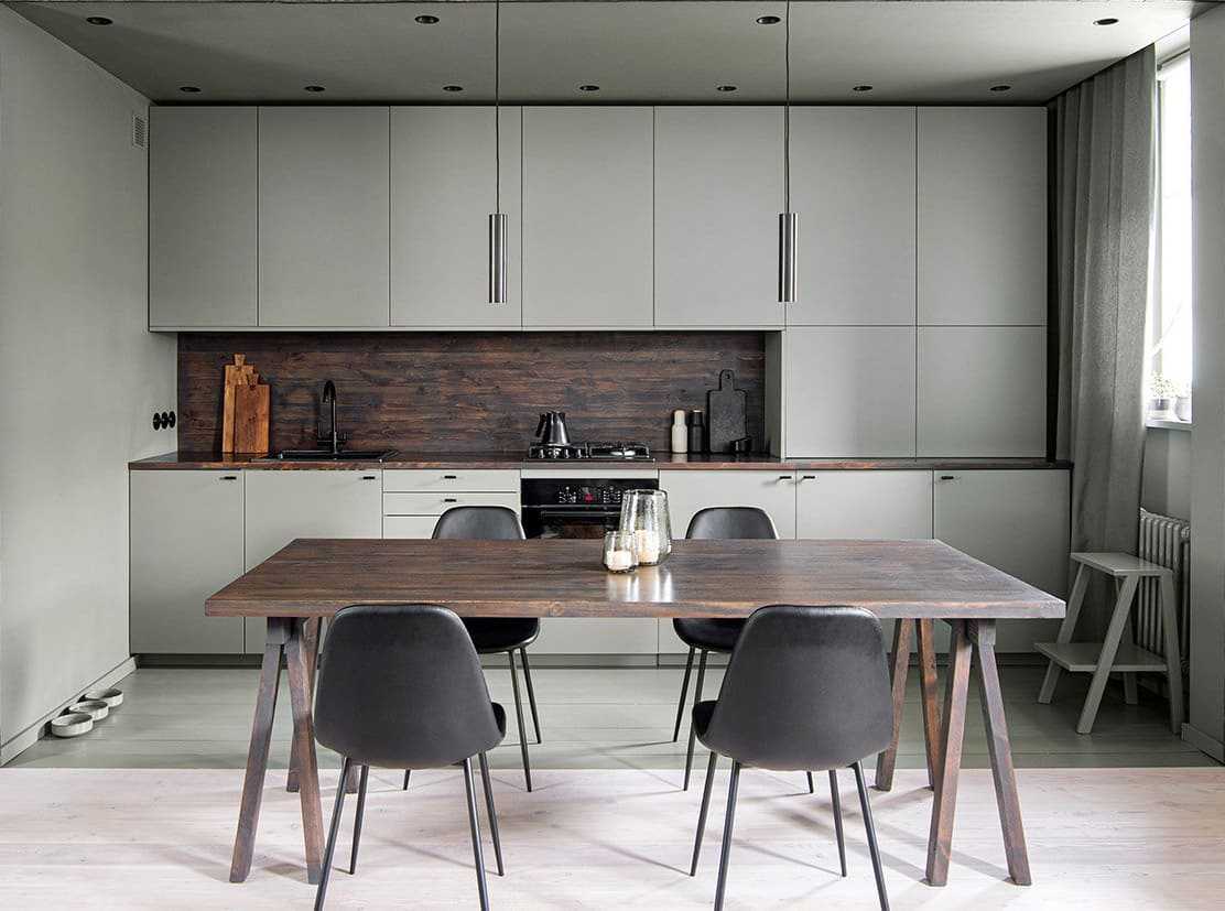 Светло-серый – идеальный цвет стен кухни и гарнитура.