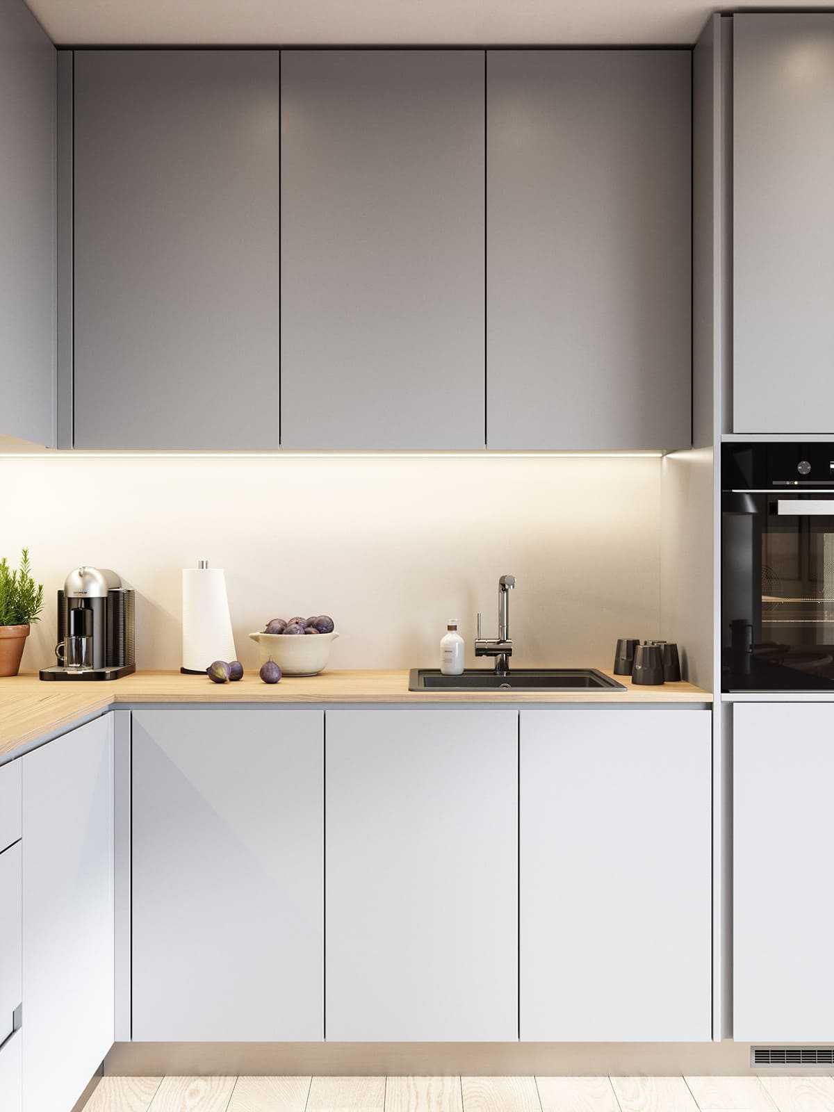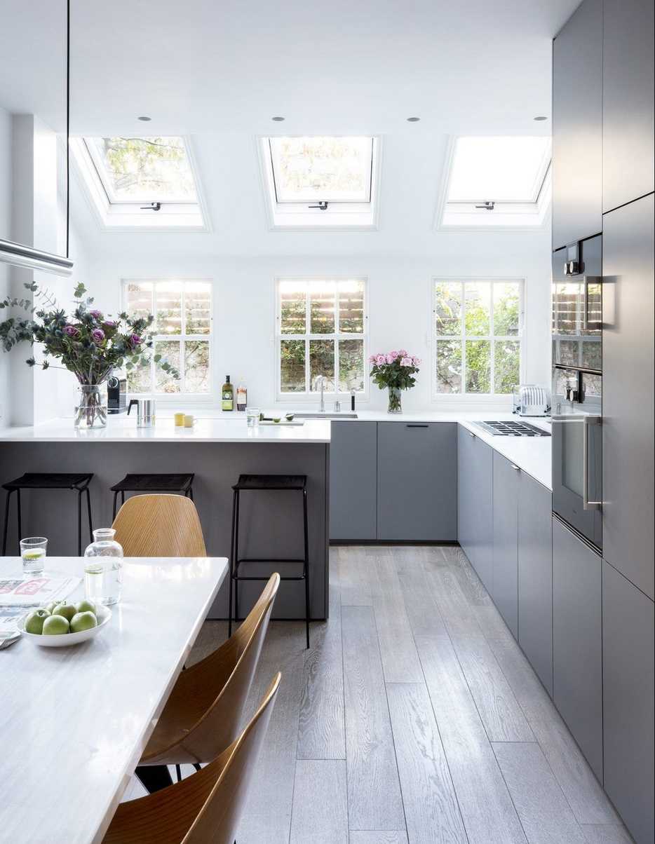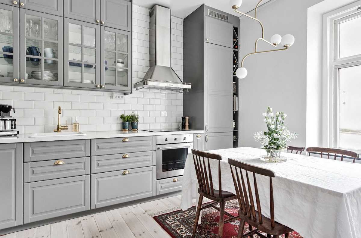 Светло-серый – идеальный цвет стен кухни и гарнитура.