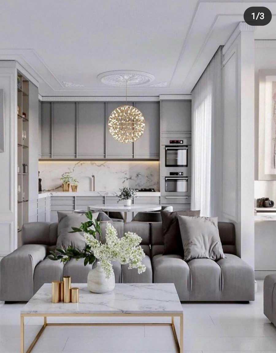 Сочетания: серый сочетается со всеми цветами радуги, но особенно хорош с белым (серые стены с белыми плинтусами выглядят сногсшибательно), розовым, желтым.