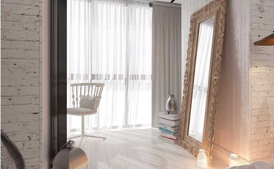Большое окно в паре с этим зеркалом и низкими прикроватными столиками делает комнату похожей на будуар парижской куртизанки или лондонской оперной дивы. Мягкий свет тканевой лампы на потолке создаёт приятный полумрак, наполненный негой и покоем.