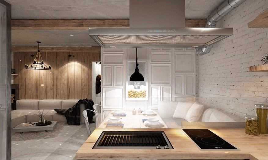 Поднять всё наверх было отличным стилистическим и функциональным решением. Это решение предоставило возможность открыть пространство и сделать его визуально больше.