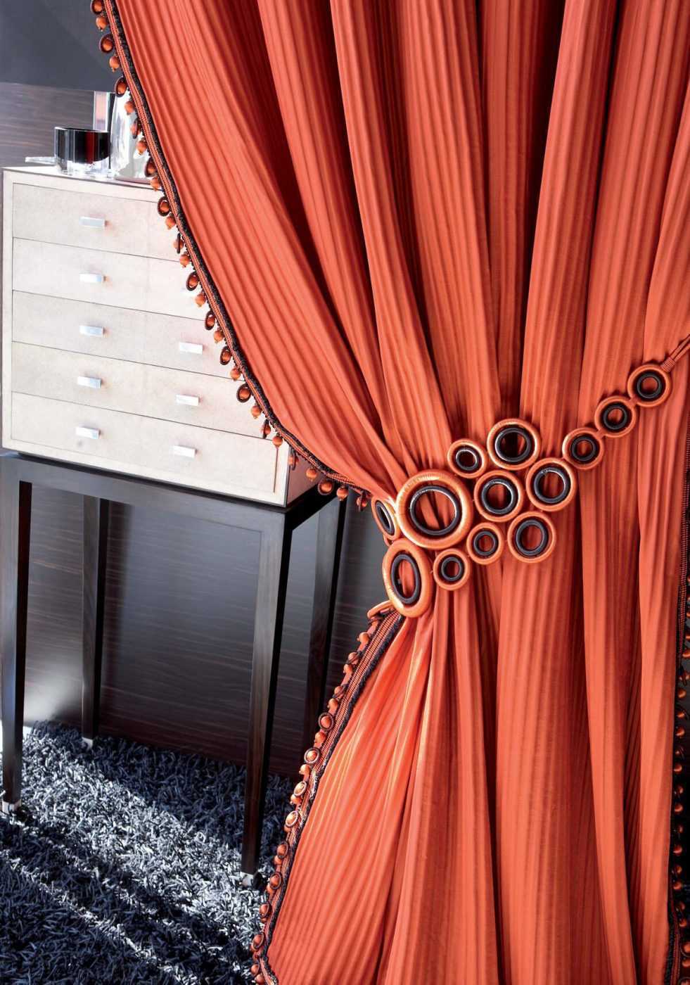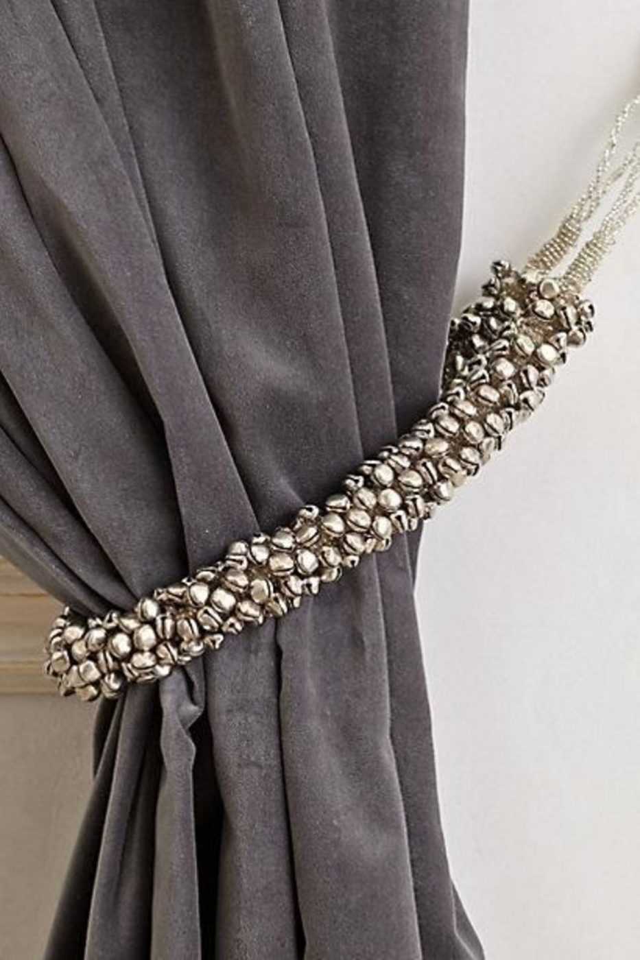 Металлические или стеклянные детали, имеющие необычную геометрическую форму, при нестандартном подходе помогут создать эксклюзивный арт декор штор.