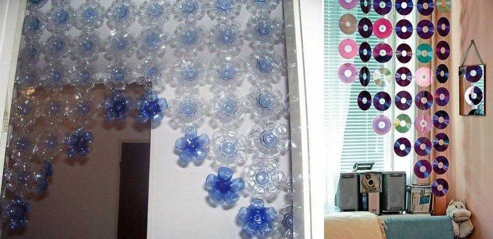 Простые болванки или пластиковые бутылки могут стать отличным материалом для декоративной шорки на дверной проем или на окно