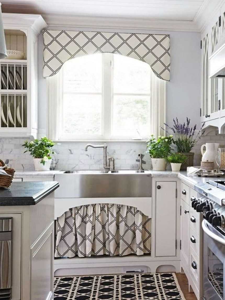 Еще одно решение – классические занавески, которые когда-то вышивали сами хозяйки. Это очень короткие ткани , доходящие до середины окна, которые когда-то встречались почти в каждом доме. Сегодня в магазинах можно найти множество занавесок этого типа в чуть более длинных и воздушных вариантах, которые отлично подойдут для кухни с маленькими окнами. Это прекрасное решение для замены классических штор и гардин.
