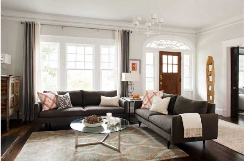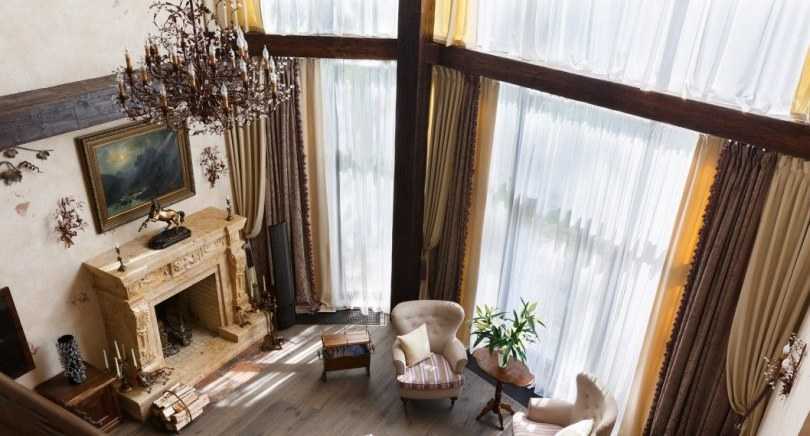 Присматривая варианты занавесок для оформления гостиной, необходимо обращать внимание не только на эстетическую составляющую, важно учесть и ряд других нюансов. Зачастую оформители интерьера не учитывают тип помещения. Простые шторы с незатейливым принтом подходят для обустройства деревенского дома