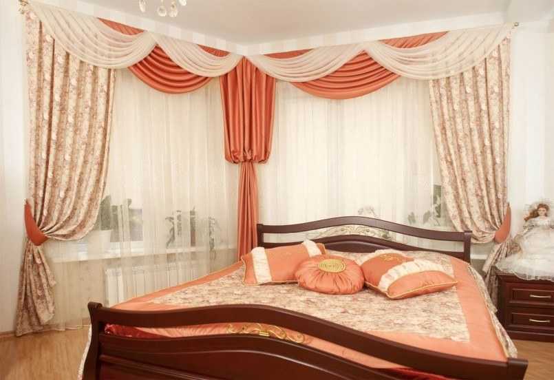 Например, важно учесть не только количество окон, но и их размер, форму самого выступа, а также вид карниза. Если он сплошной, можно купить для окон единую штору (вуалевую, тюлевую)