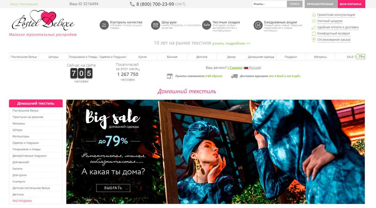 В Postel Deluxe найдется все для обустройства кровати и спальной комнаты. Можно буквально с нуля собрать каркас, выбрать матрас любого уровня жесткости, подушки из пера и пуха, бамбуковые одеяла и комплект постельного белья (простынь, наволочка и пододеяльник).