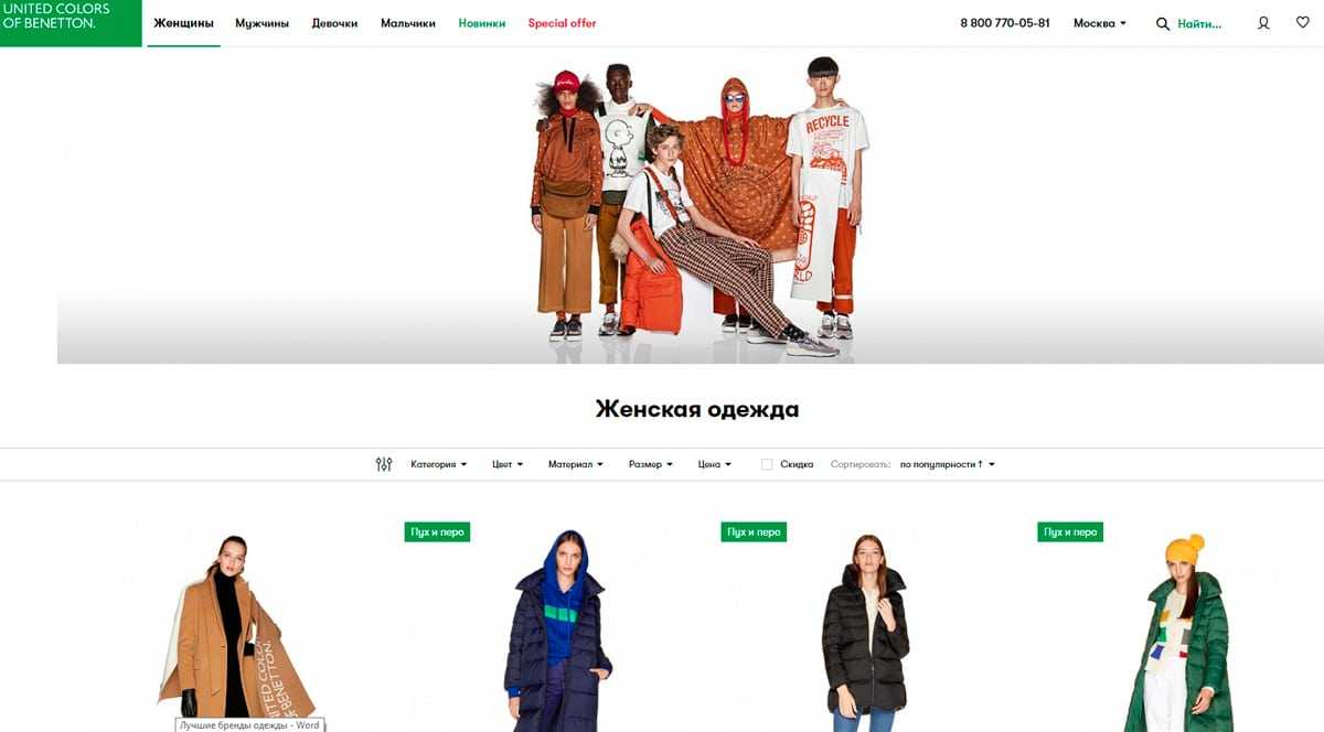 Бренд United Colors of Benetton основанный в начале 2000 года придерживается строгости силуэта, чистоты линии и сдержанной элегантности. Это лучший магазин в рейтинге ТОП-10 за 2021 год, где можно найти модную женскую одежду и аксессуары, внешний вид которых говорит сам за себя.