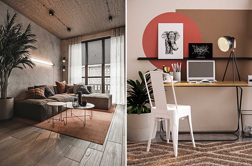 Посмотрите на удачные примеры микса минимализма и индустриального стилей: