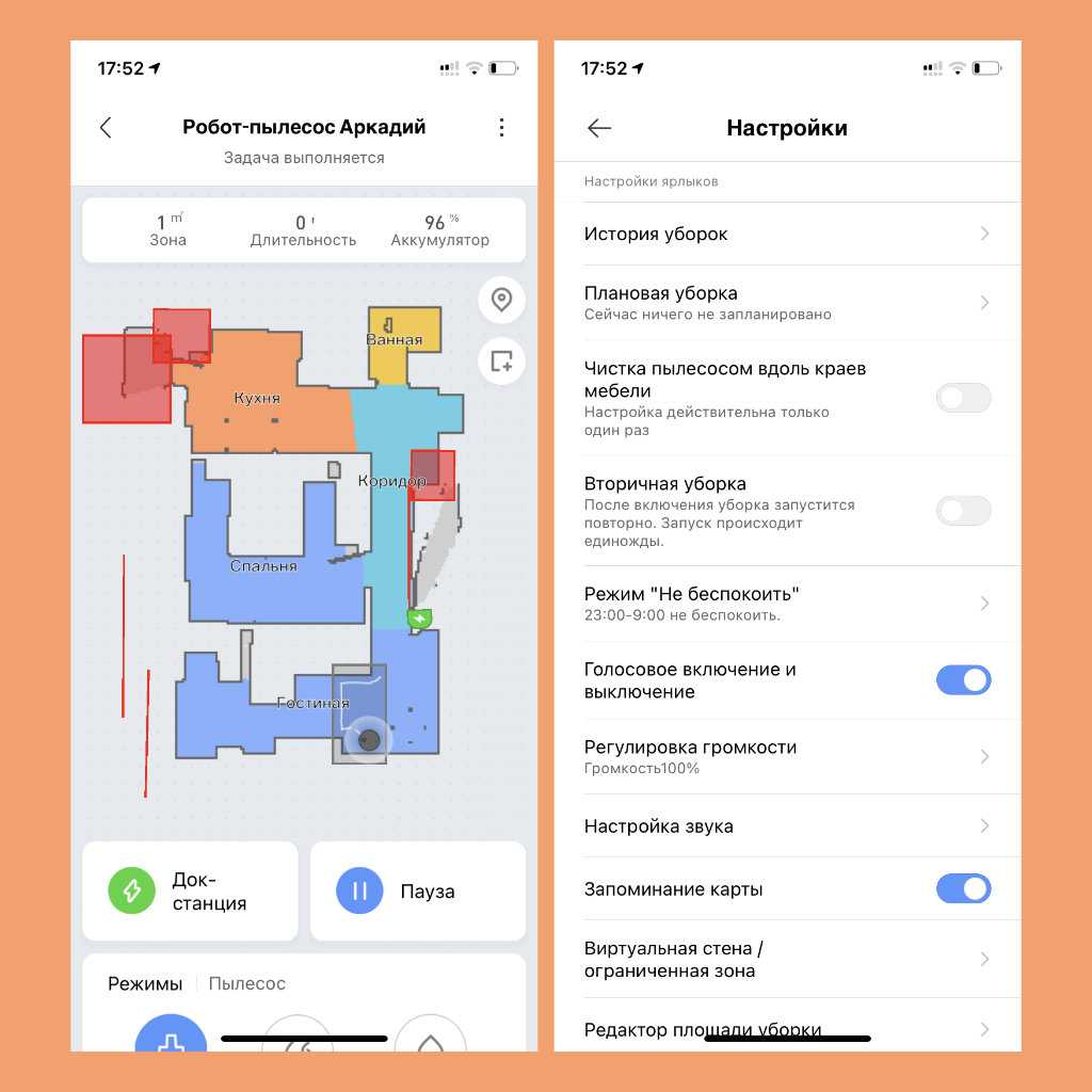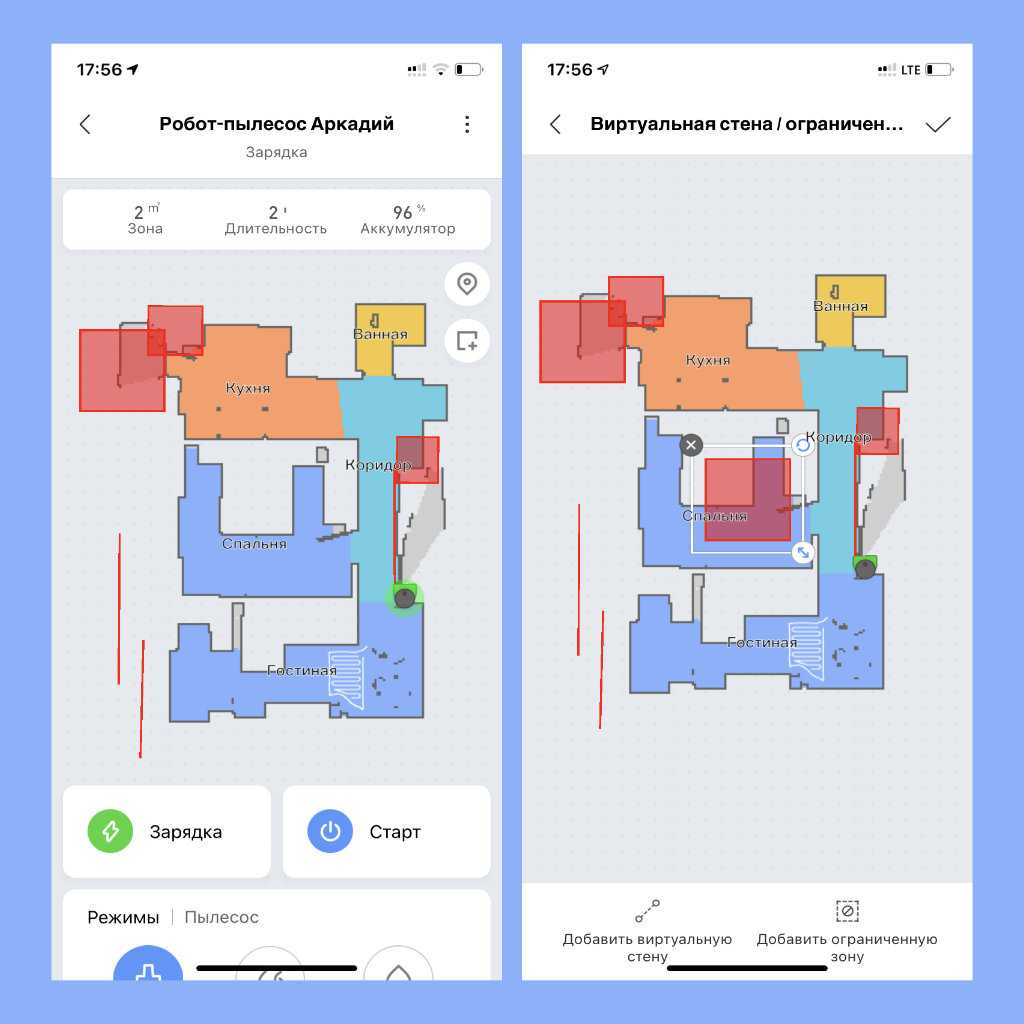 Построение карты помещения. Далеко не все роботы-пылесосы делают это. Данная особенность позволяет выбирать место уборки: или конкретный участок, или комнату. Она же дает возможность добавлять виртуальные стены и ограничивать площадь другим образом. Без этого было бы совсем не то.