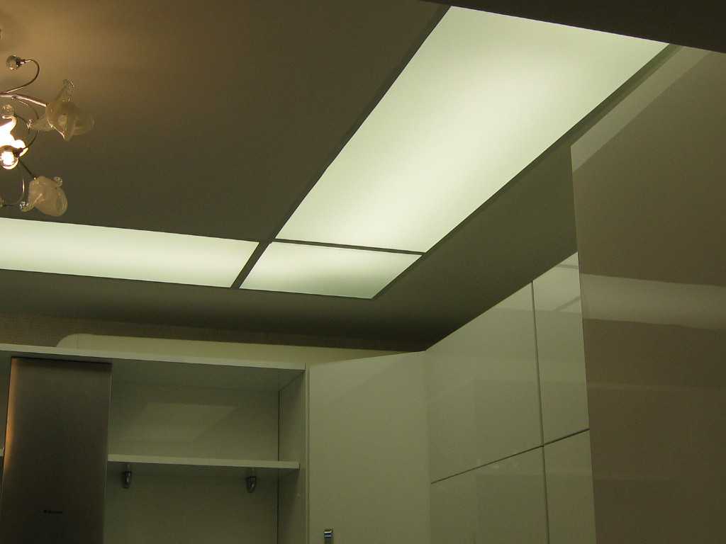 Есть определенные требования и к оформлению потолочной поверхности. Она обязательно должна быть белой и идеально гладкой. При этом совершенно не обязательно обустраивать двойной подвесной потолок. Можно просто подготовить поверхность под побелку или покраску и украсить ее подсветкой.