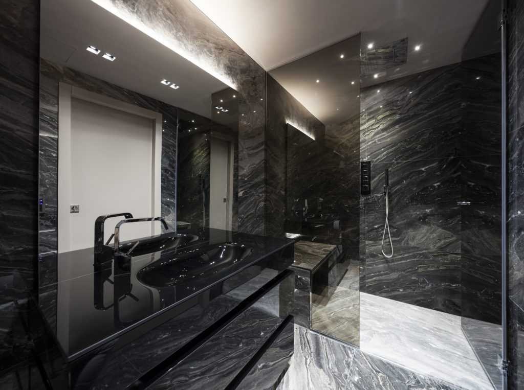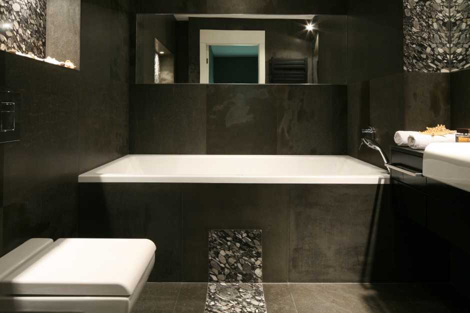 Камень чрезвычайно прочный и 100% натуральный. Идеально подходит для ванной комнаты, оформленной как в классическом, так и в современном стиле. Он универсален, подходит как для небольших комнат, добавляя элегантность и класс любому интерьеру. Недостатком является, к сожалению, стоимость каменных плит и их сборка — лучше всего доверить это опытному специалисту, поскольку неправильное размещение камня может испортить ожидаемый эффект и даже способствовать образованию различных видов механических повреждений в более позднее время.