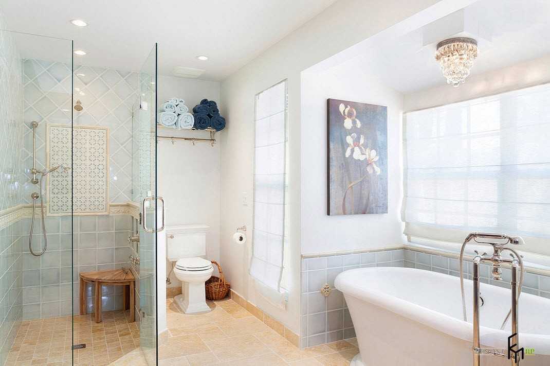 Если речь идет о ванной, большое внимание уделяется эргономичному расположению сантехники, мебели и аксессуаров. В оформлении используются преимущественно светлые цвета