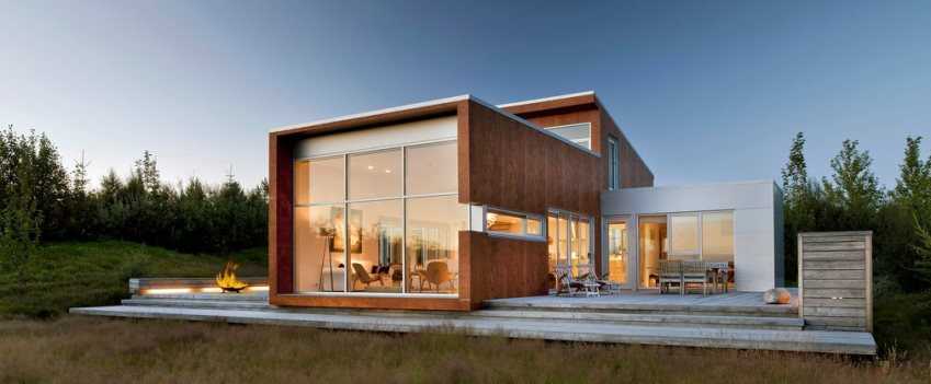 Допустимой для домов в стиле минимализм является и каркасная технология. В этом случае материалом для строительства могут выступать как метал в комбинации со стеновыми панелями, так и дерево (выдержанное в требуемой стилистике).