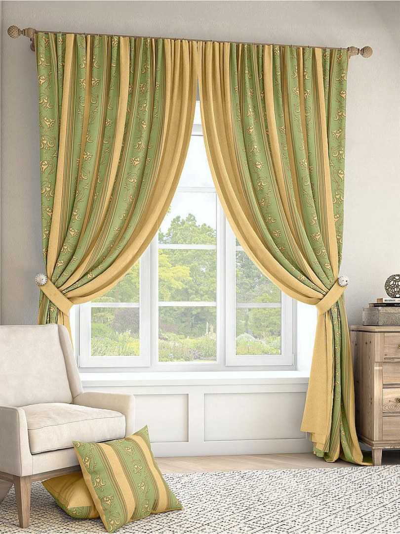 | Ампир | Тяжёлые и плотные в сочетании с прозрачными тюлевыми. Предпочтительнее дорогие материи — бархат, велюр, атлас, натуральный шёлк, парча. |