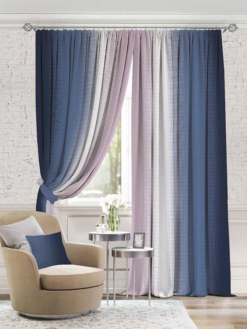 Комбинированные материалы для портьер – это одна из модных тенденций. Такие шторы могут иметь один слой, быть двойными или тройными. При этом используется как однотонная, так и разноцветная ткань – с рисунками и без.